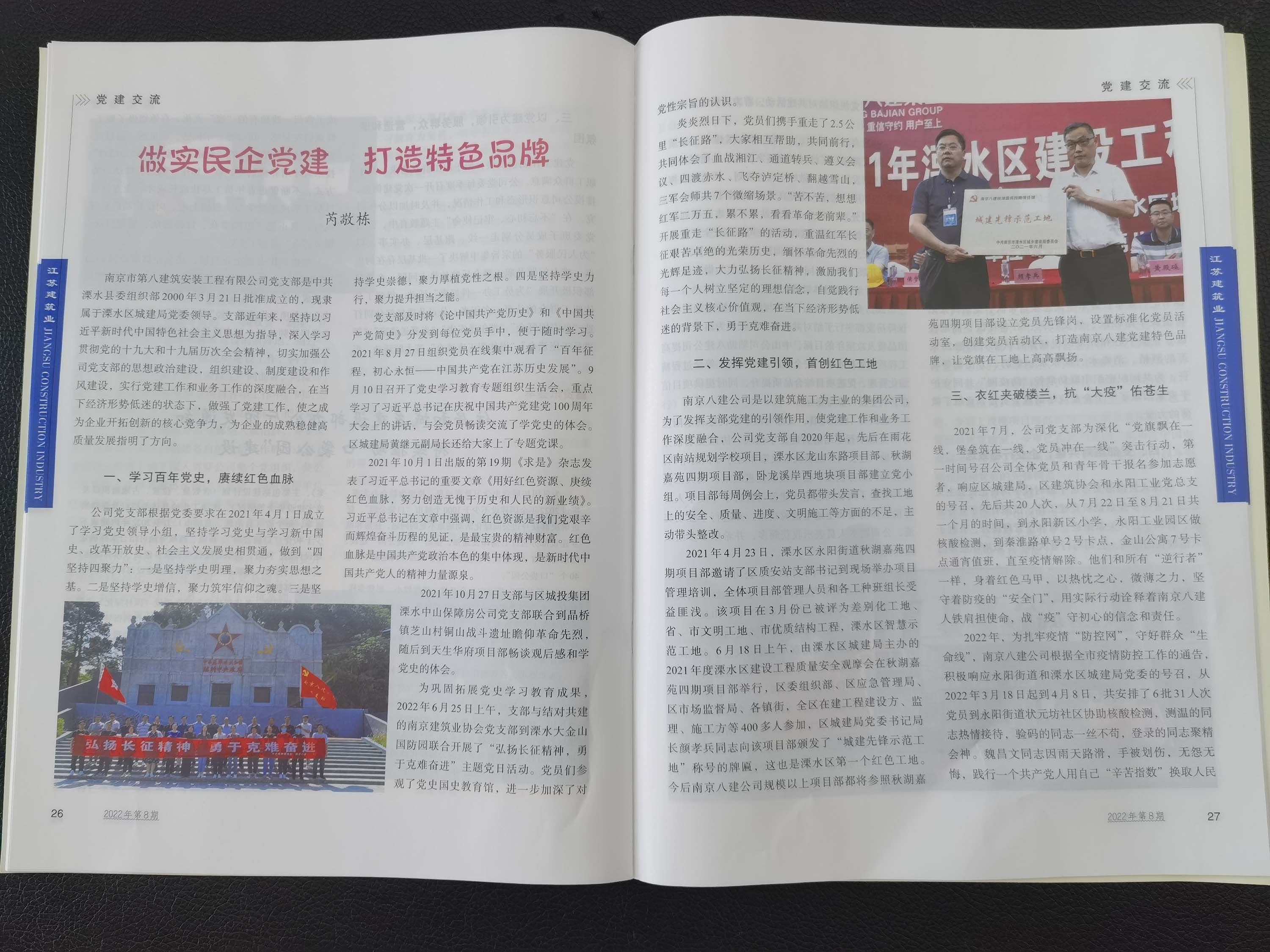 2022年8月《江蘇建筑業(yè)》刊登了芮敬棟同志所寫《做實民企黨建,打造特色品牌》文章 -